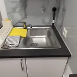 Along with tea and coffee-making facilities, the apartment features a fully furnished kitchen equipped with a fridge and an oven.
